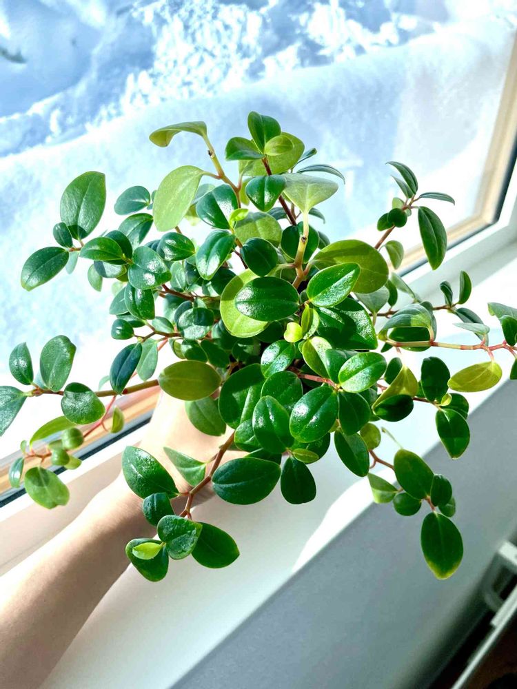 雪景色の窓際にペペロミアさんが素敵ですね✨✨✨🥰💕🎶