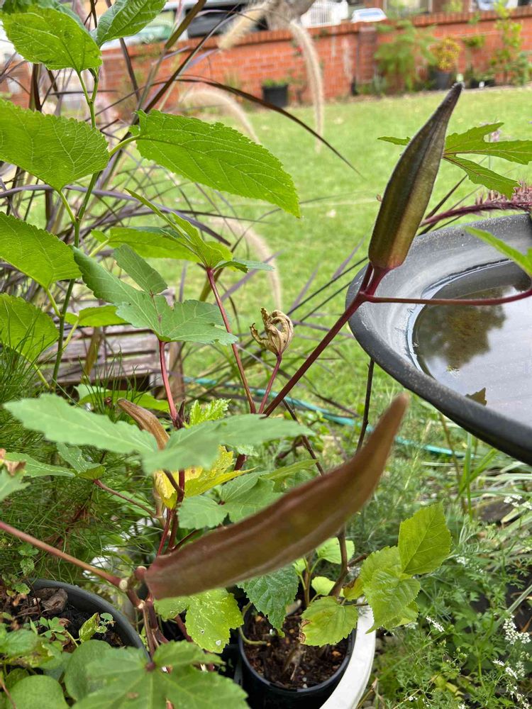 写真の赤オクラは、もう、種になっているようですね😅💦
