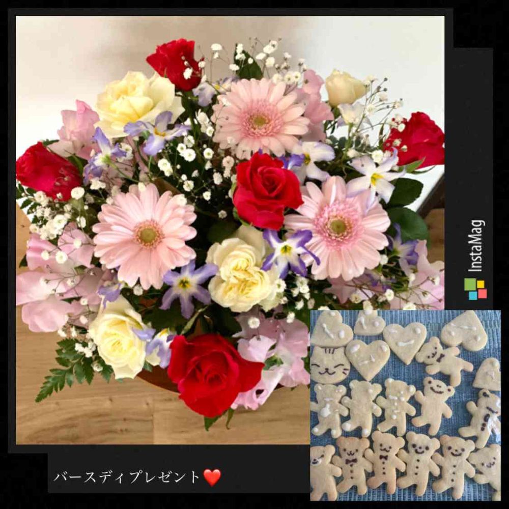 綺麗なお花と、手作りクッキー🍪嬉しいに決まってるね😆