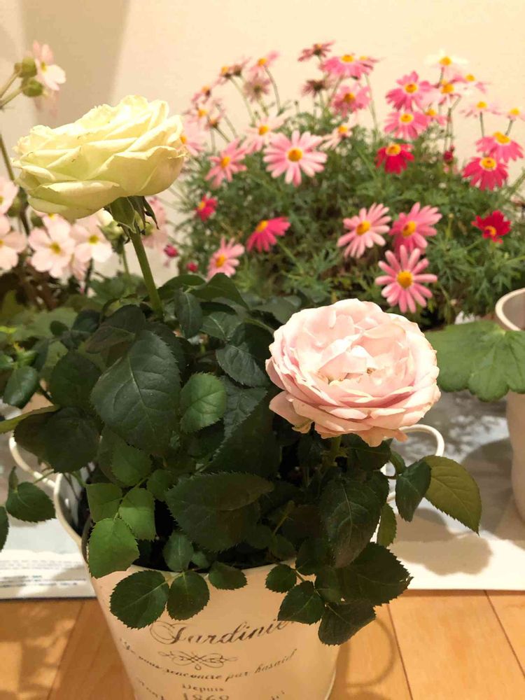 今日のお花だったので、玄関の中に避難中のお花たちと一緒にパチリ🎶💕