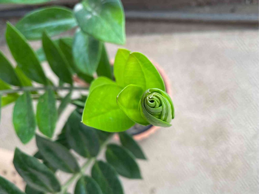2/14 先ほどのザミオカルカスの蕾を真上から覗いたら、バラの花のように見えちゃったので、upしちゃお❣️