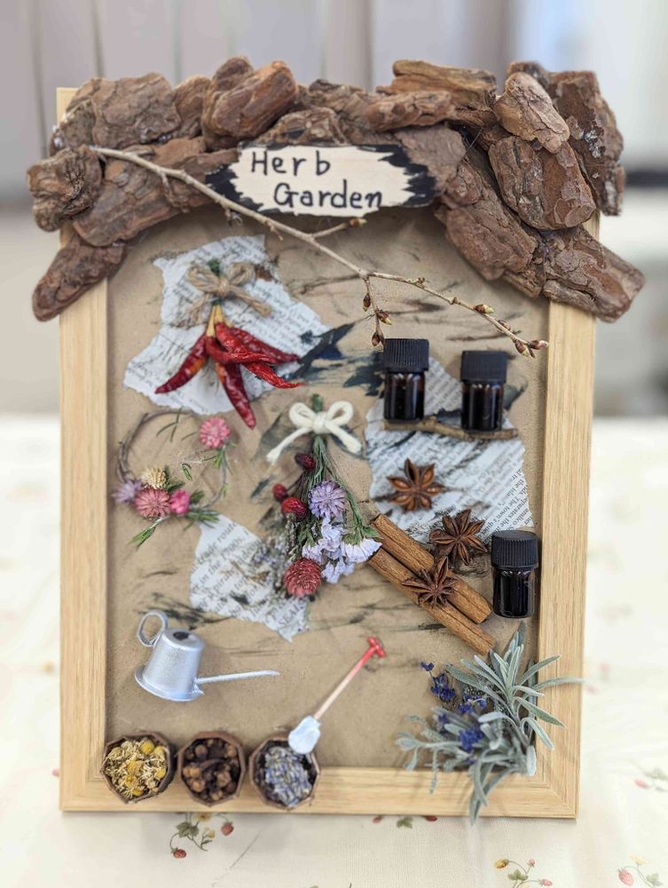 ハーブ教室の先生の作品もお花、小物、新聞📰などを使って、素敵な額でした(*ฅ́˘ฅ̀*)💕