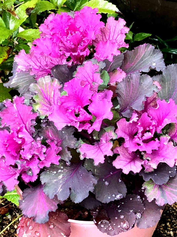 3年目のハボタンが寒さにも元気で綺麗に色付いてくれています🌿💕🌿