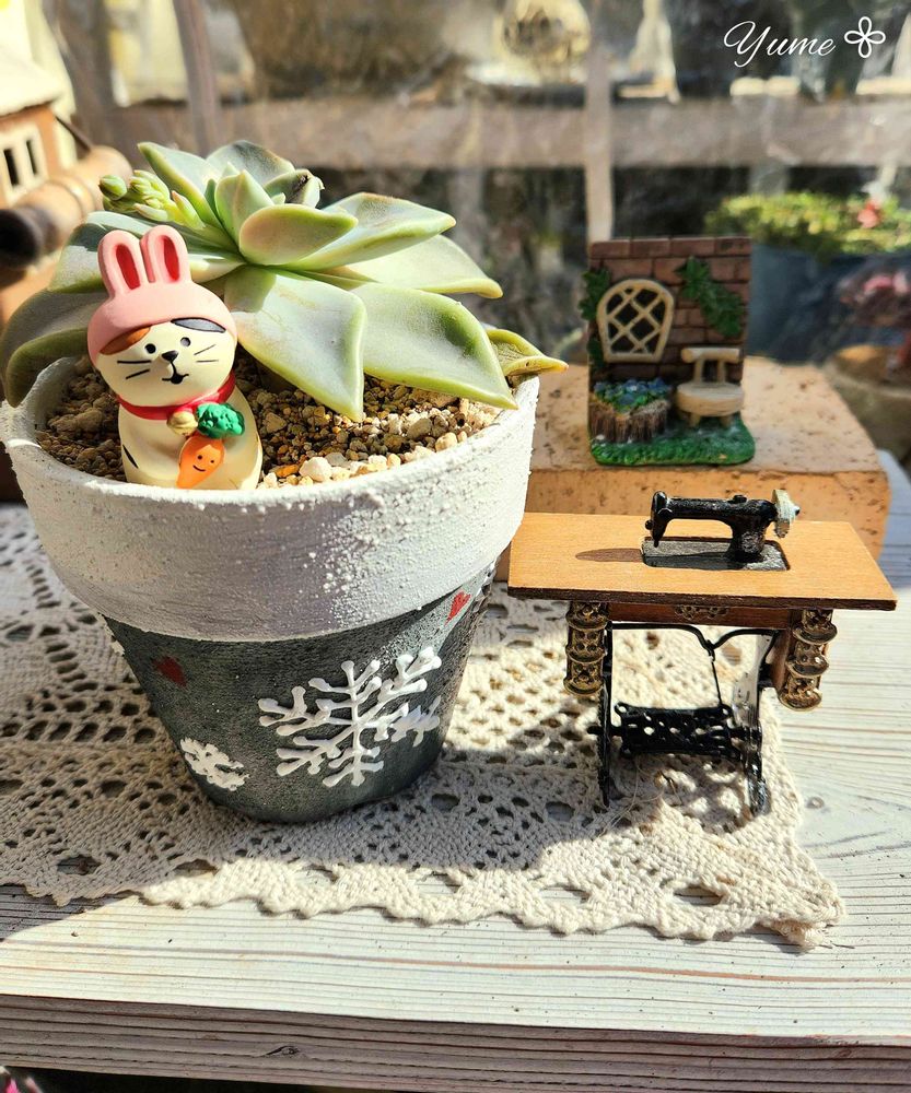 お詫びに、新しいリメ鉢に深植えして、🐰ちゃんと📷️✨🎵