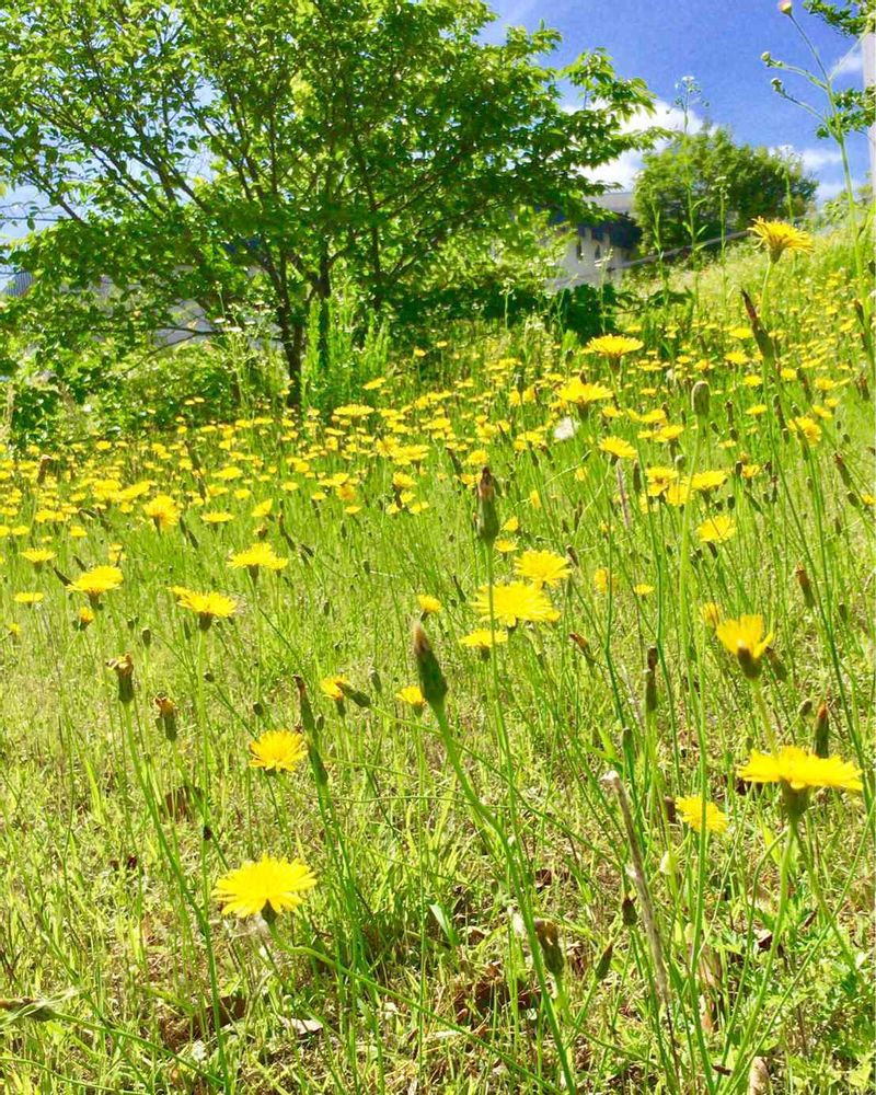 今年はこのブタナが大量増殖してて、街路樹の下がどこもかしこもこんな感じになってるんです😳