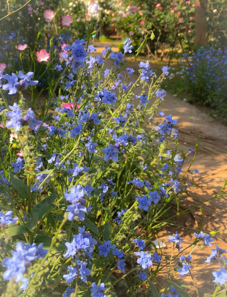 見頃を少し過ぎた草ぶえの丘バラ園に行ってきました。オールドローズ中心のバラも素敵だったけど、一緒に植栽されている草花も可愛くて。このブルーの小花はシナワスレナグサ。是非お迎えしたかったけど、苗は売り切れ。来年用に種から育ててみようかな、と思ってます😊💙