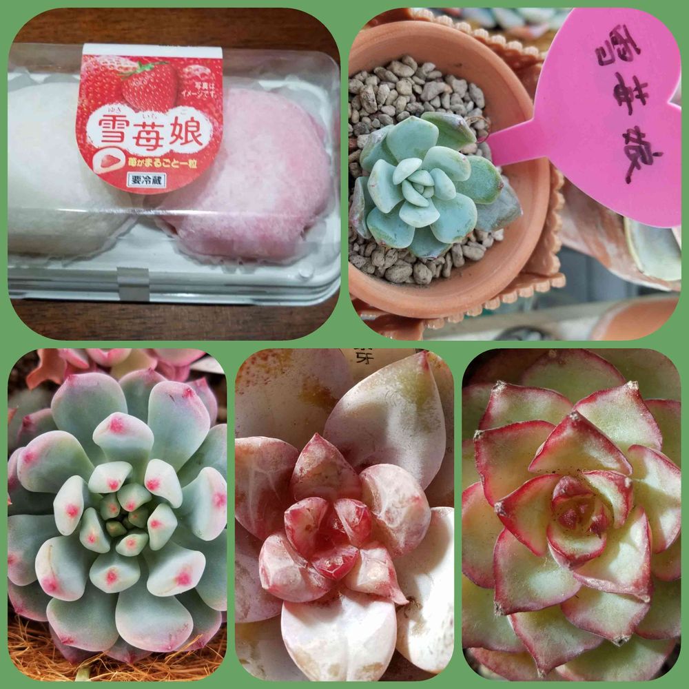 エケベリア 雪苺娘、ピンクになりませんね〜😅仕方ないので、本家雪苺娘をコンビニで買ってきてもらいました。
