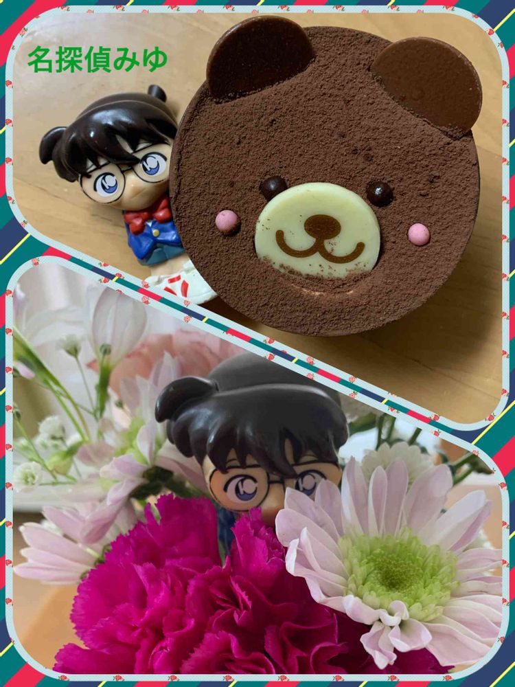 昨日のバレンタインに主人からクマのチョコレートケーキとミニブーケもらいました🥰
