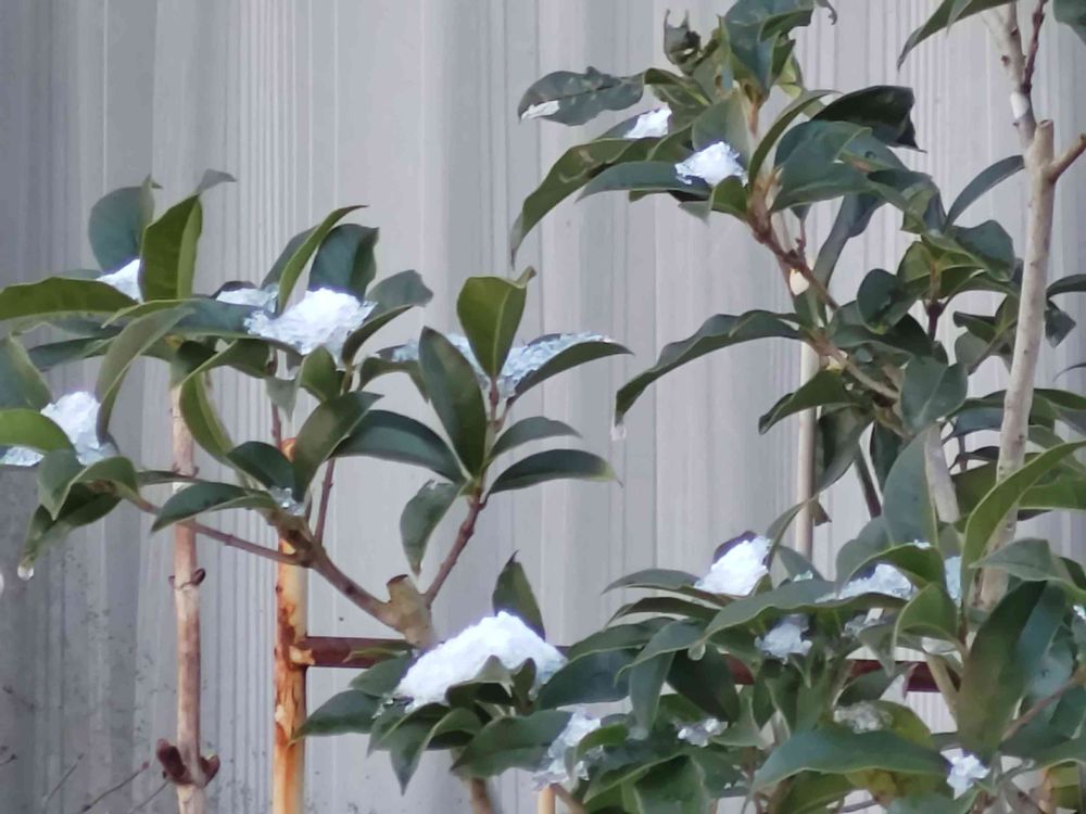 金木犀の枝にも雪が残っています。