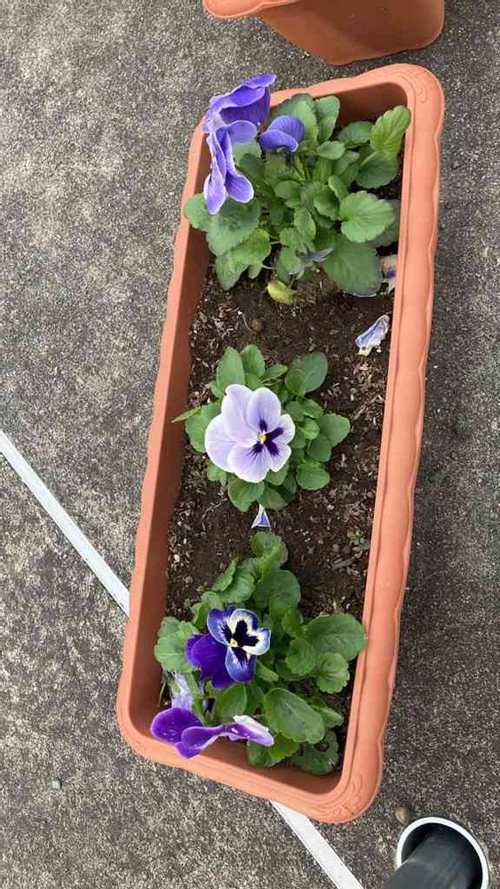 ビオラの花径は小輪で2cm~3cm、中輪で3cm~4cm。パンジーと比べて小ぶりなのが特徴です。最近は品種改良が進み、小指の爪くらいの極小輪サイズのものもあります。