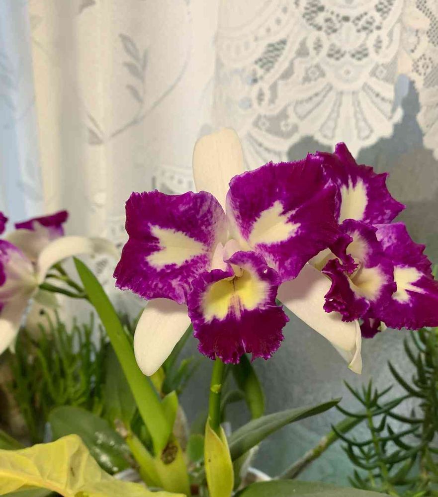 唯一、出窓のカトレアがもうひと月位咲いています🌸