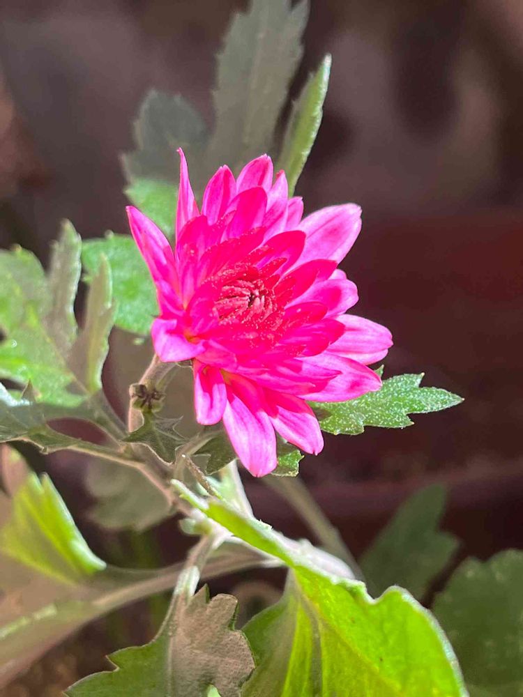 菊の新芽🌱が出ているな〜と思っていたら、蕾らしき物が出て来て咲きました🤗