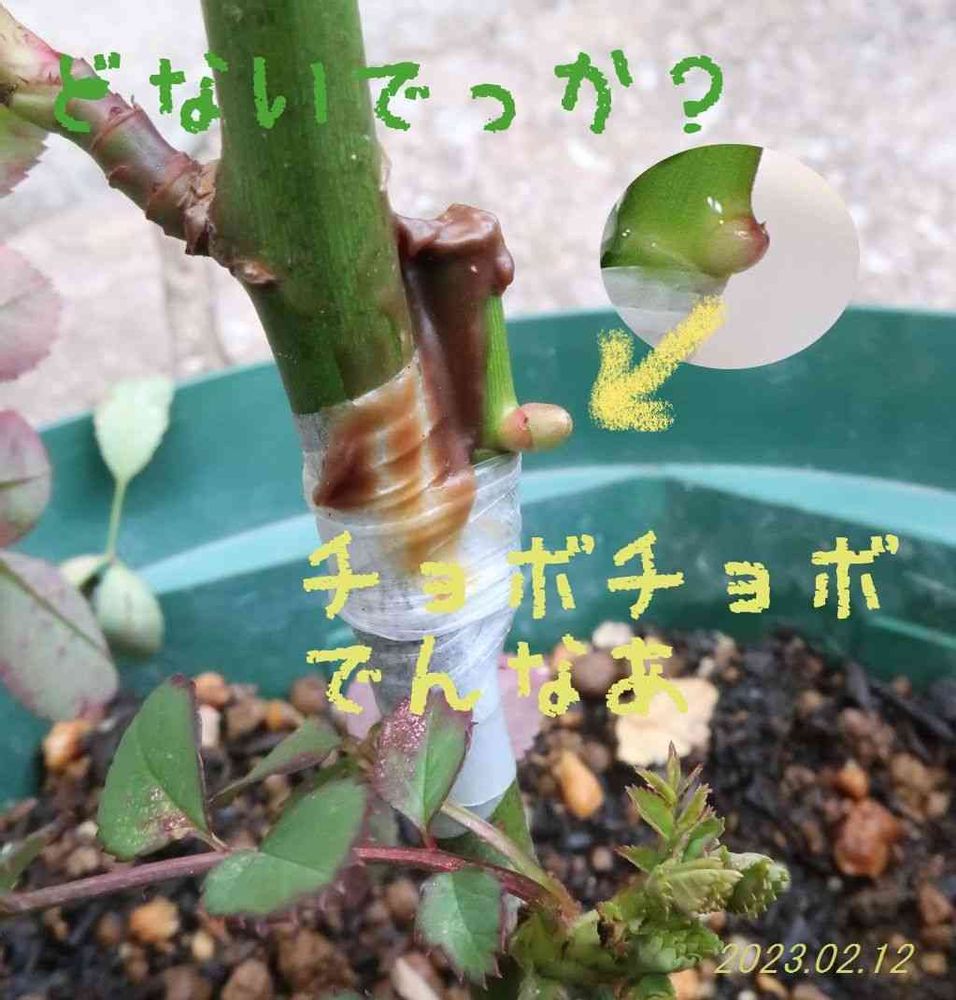 バラ接ぎや三寒四温二ミリ伸び