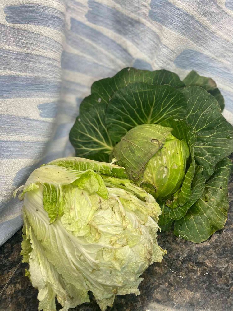 昨夕、白菜とキャベツ収穫。お店の物とは比べ物にならない出来ですが、自分の畑でここまで大きく育ち、愛おしいです。