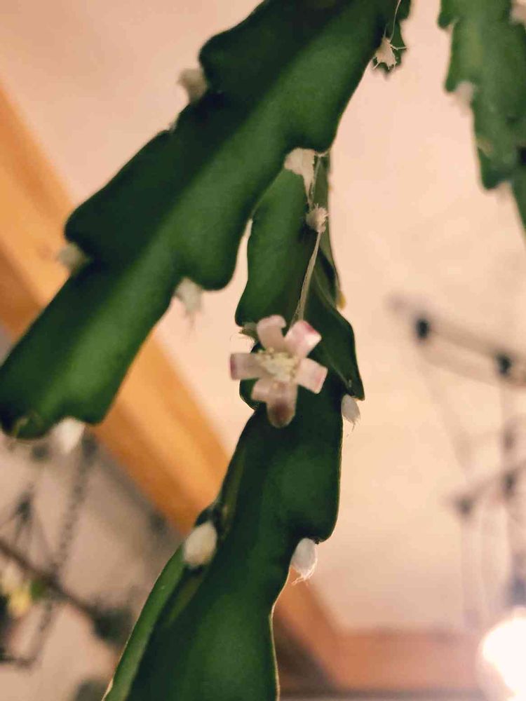 吊り下げのレピスミウムに小さな花が咲いてました♪