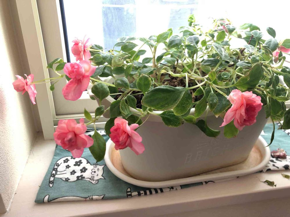 窓辺,八重咲きインパチェンス カリフォルニアローズ,八重咲きインパチェンスの投稿画像