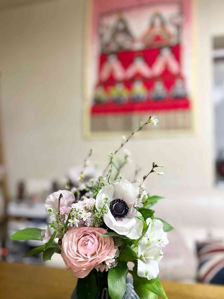 まだまだ外でのお花は無理なのでせめて春を感じるお花を楽しんでます。