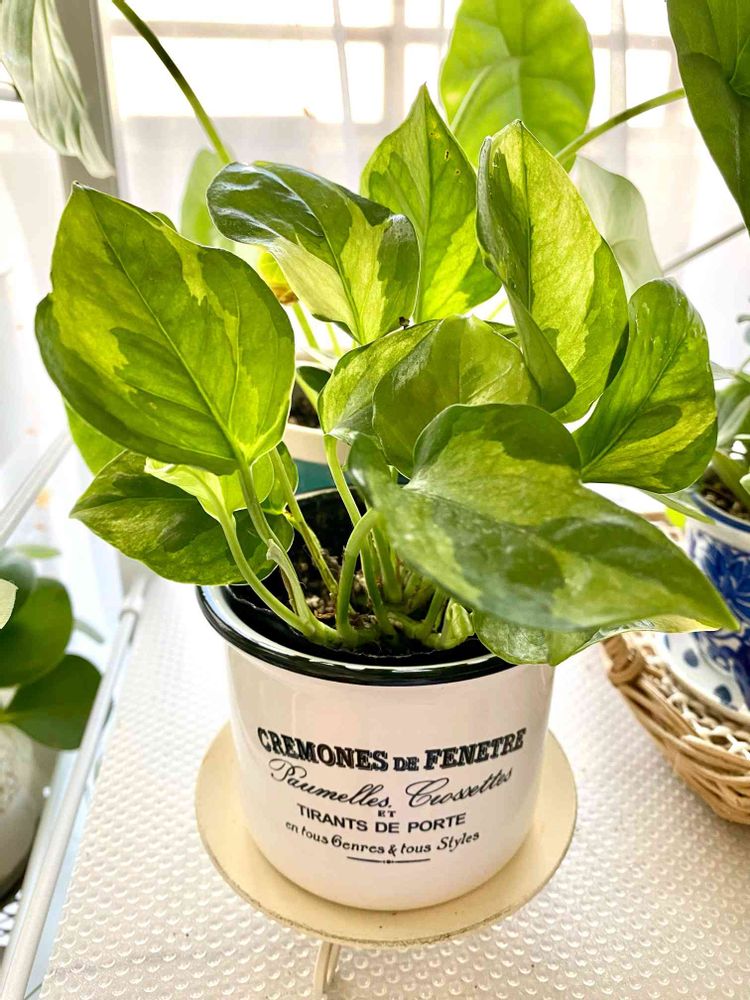 それと、この子は小さな株で、ポトスのわりにはゆっくり気味の成長ですが、最近葉が増えてきたので、置き場所は大事なんですね😌