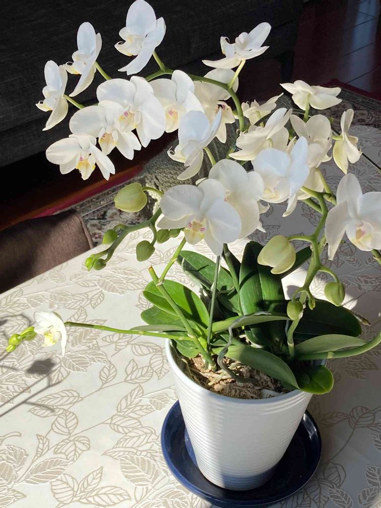 白いミディ胡蝶蘭もいいものですね〜🤍🤍🌿