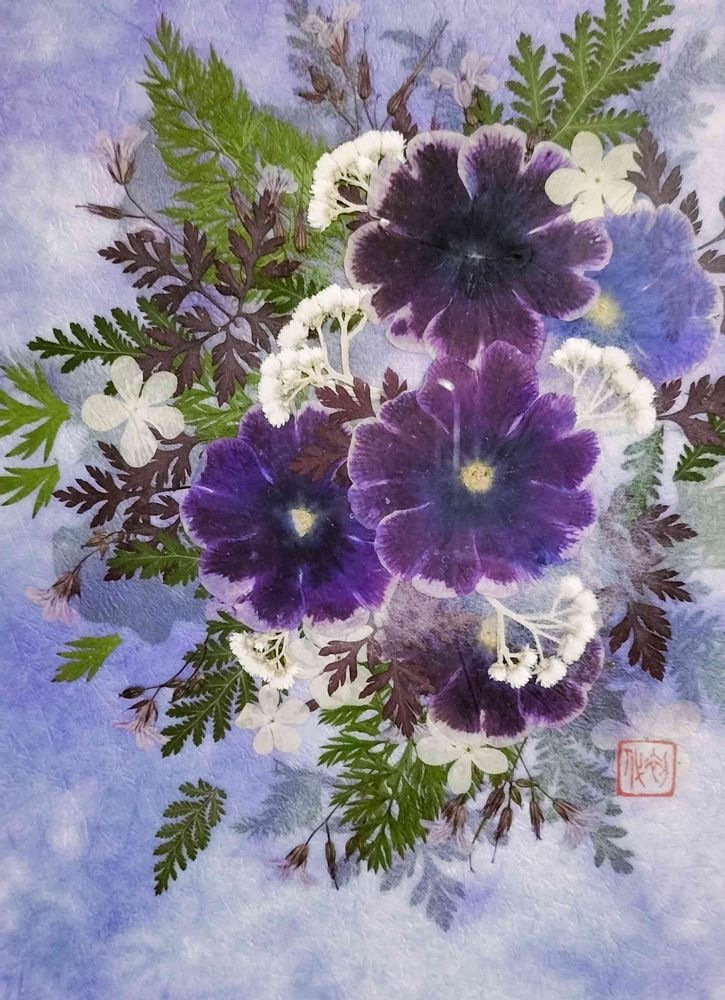 押し花絵素敵な色合い(୨୧ ❛ᴗ❛)✧💜💙