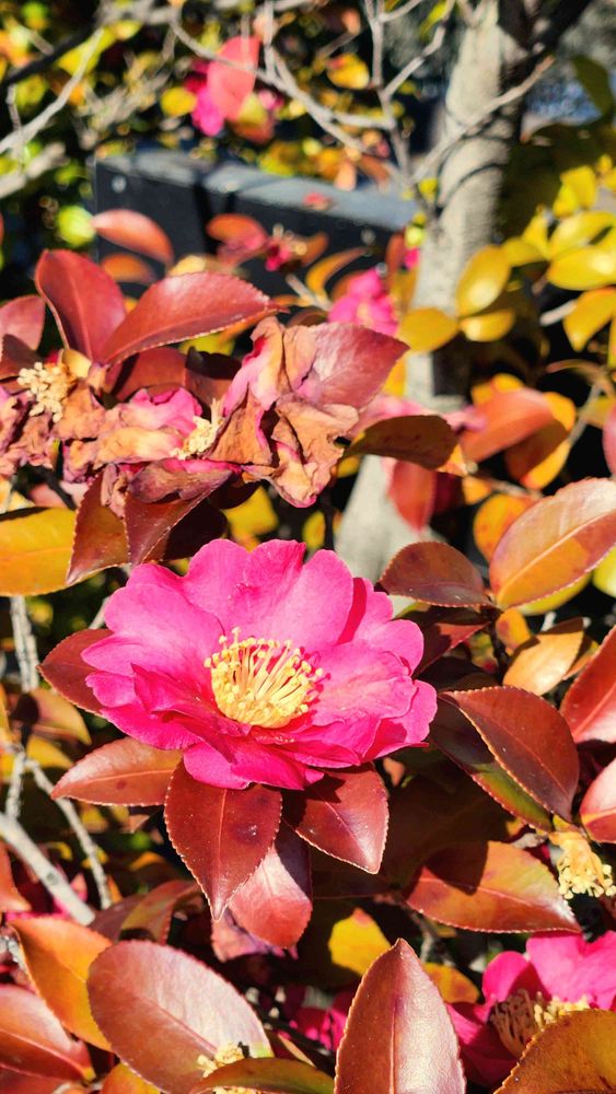 今日はお散歩日和でサザンカがお日様に輝いてました♪