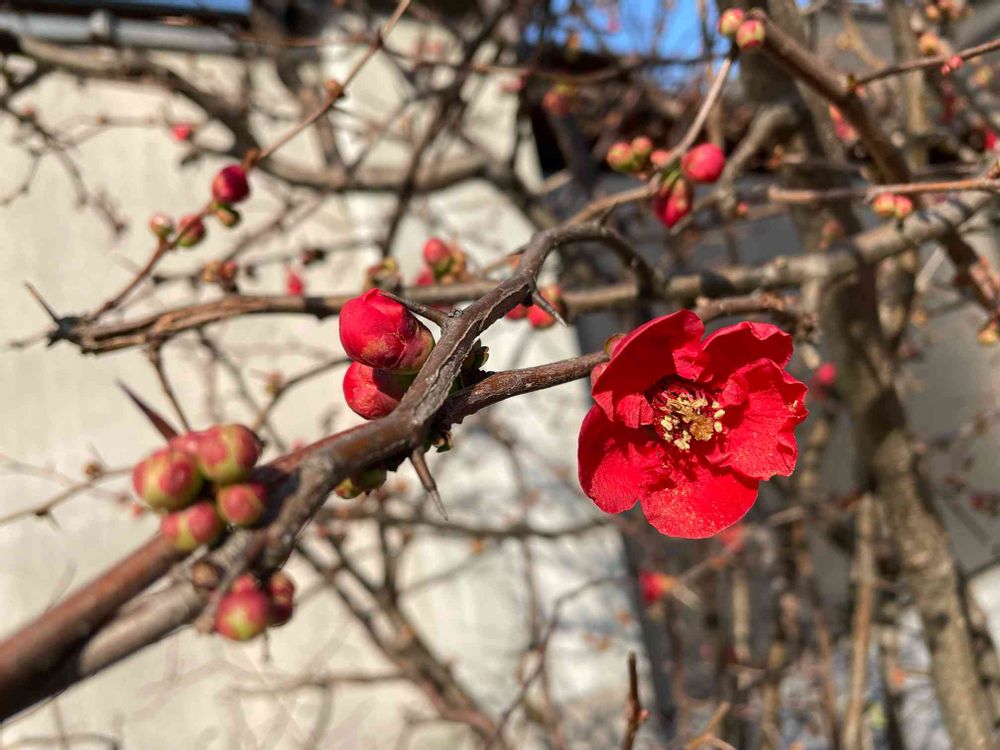 久しぶりに真っ赤なボケの花❤️を見ましたよ😆