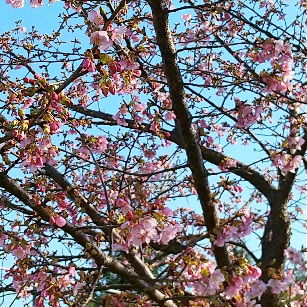 河津桜❓今日は冷たい風の吹く日でしたので、濃いめの桜が心に染みます😊