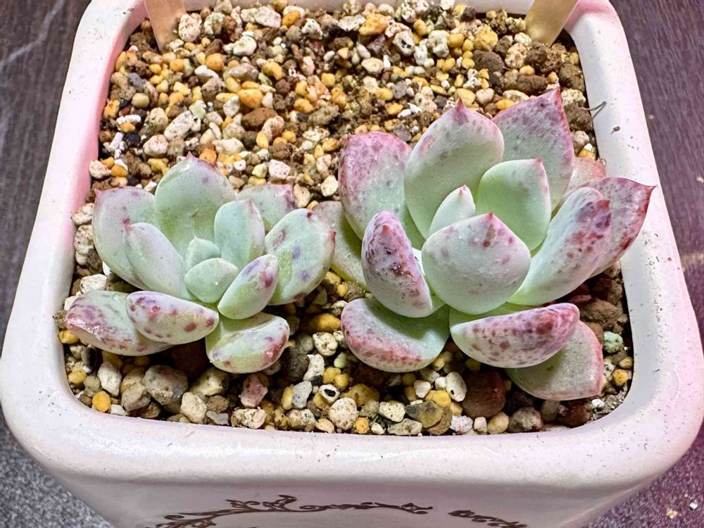 ミントグリーンにやや肉厚の短葉ロゼット、葉数、