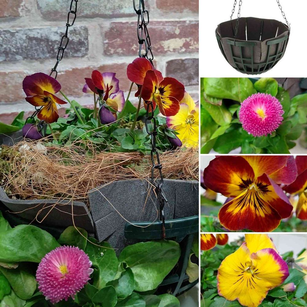 上には虹色スミレ。スリット部分には、デージー タッソーピンク。スポンジが隠れるくらい、葉っぱが繁りますように。スリットバスケットより、植え付け難しかったです😣