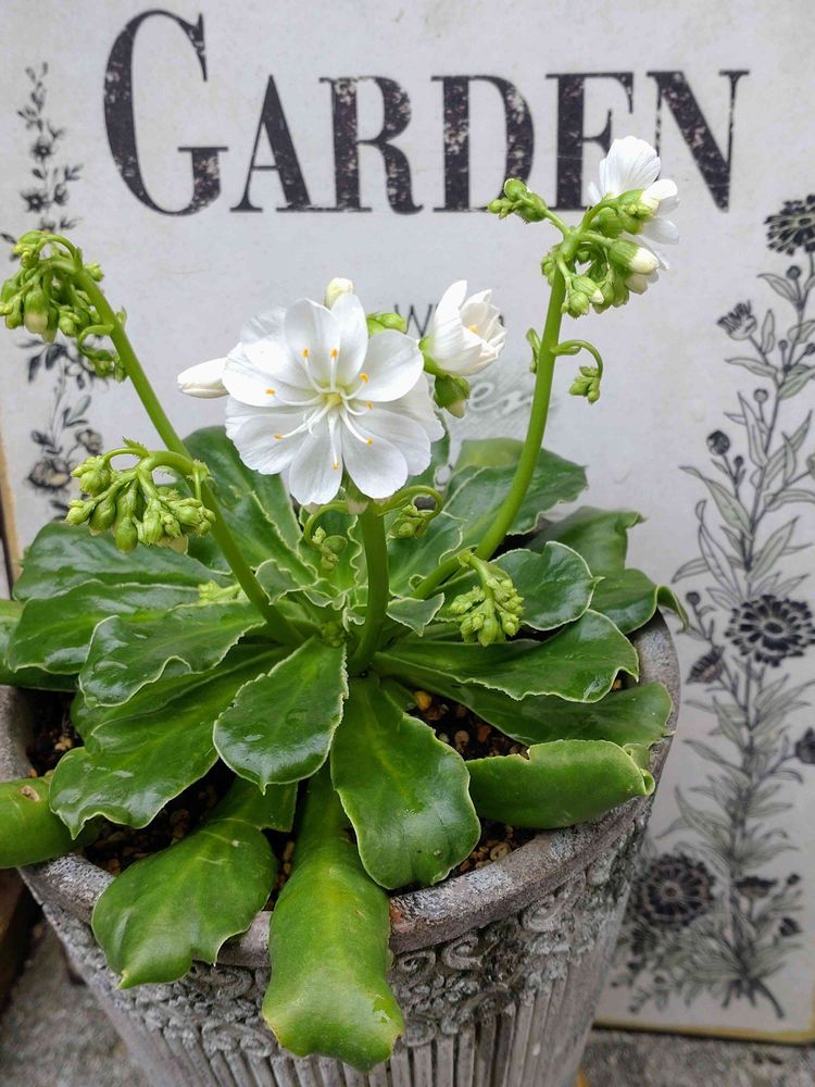 レウイシアの白♡咲きました✨初めての夏越し…冬越し🙄枯らすのではとヒヤヒヤして💦無事に開花はうれしかった~🙌🎶
