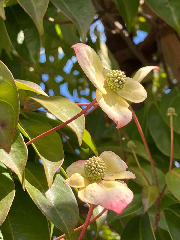 花の下につく花弁の様な苞の先がとんがっていてヤマボウシかな?と思いますが