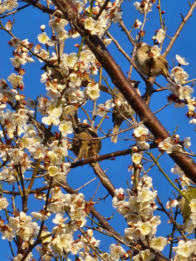 白梅に動くものが見えたのでシャッターを押してみました。