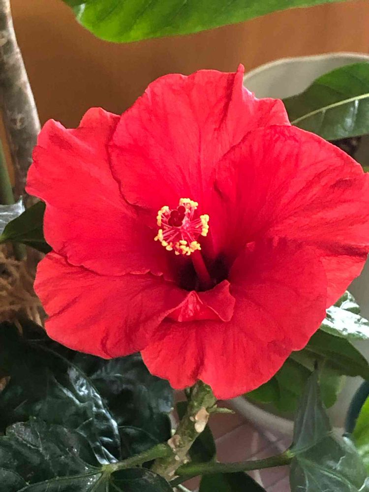 うちもくら~い室内に入れたハイビスカス🌺は寒そうに突っ立てるだけだわ~