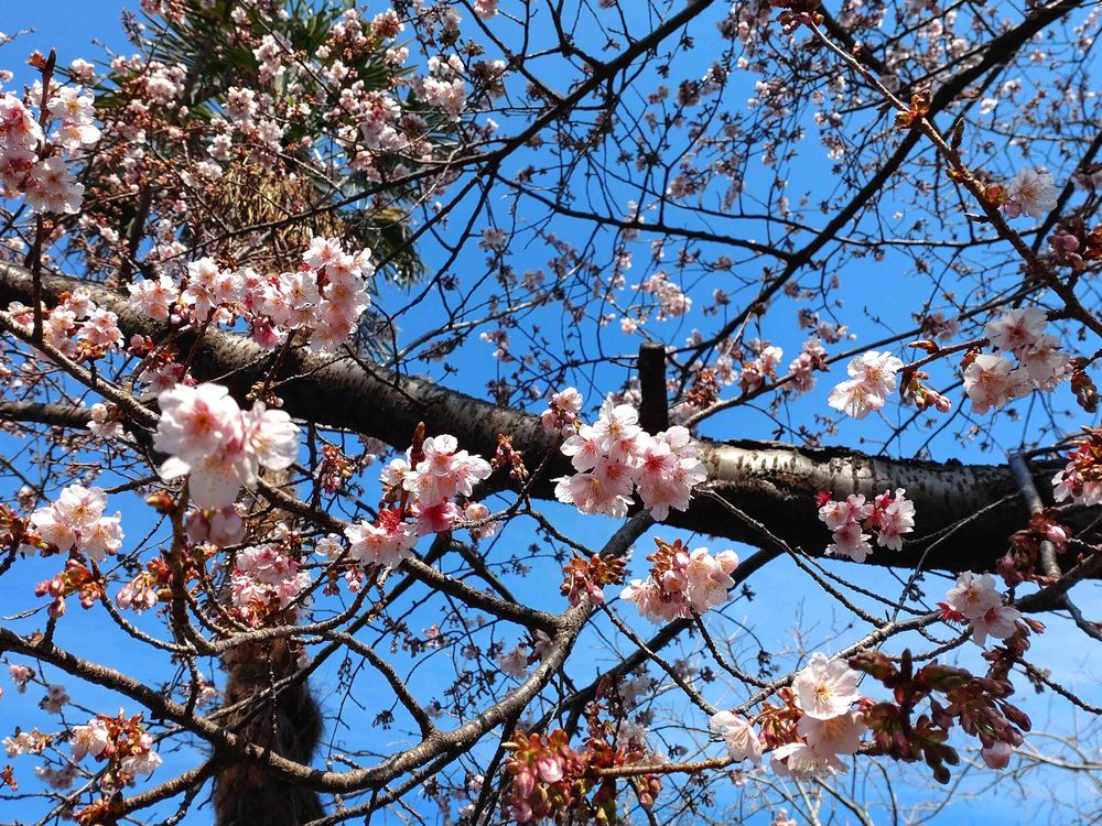 数日前ですが、天気がとても良い日、もう桜が咲いていたところを発見👀👀早い😯