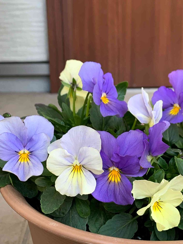 この手の薄い紫と、黄色のいろんな色合いのビオラ、すごく好きかもー🤗