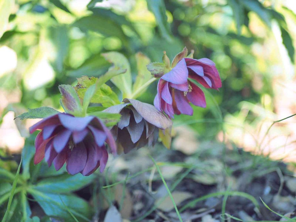 公園の木陰にクリスマスローズ