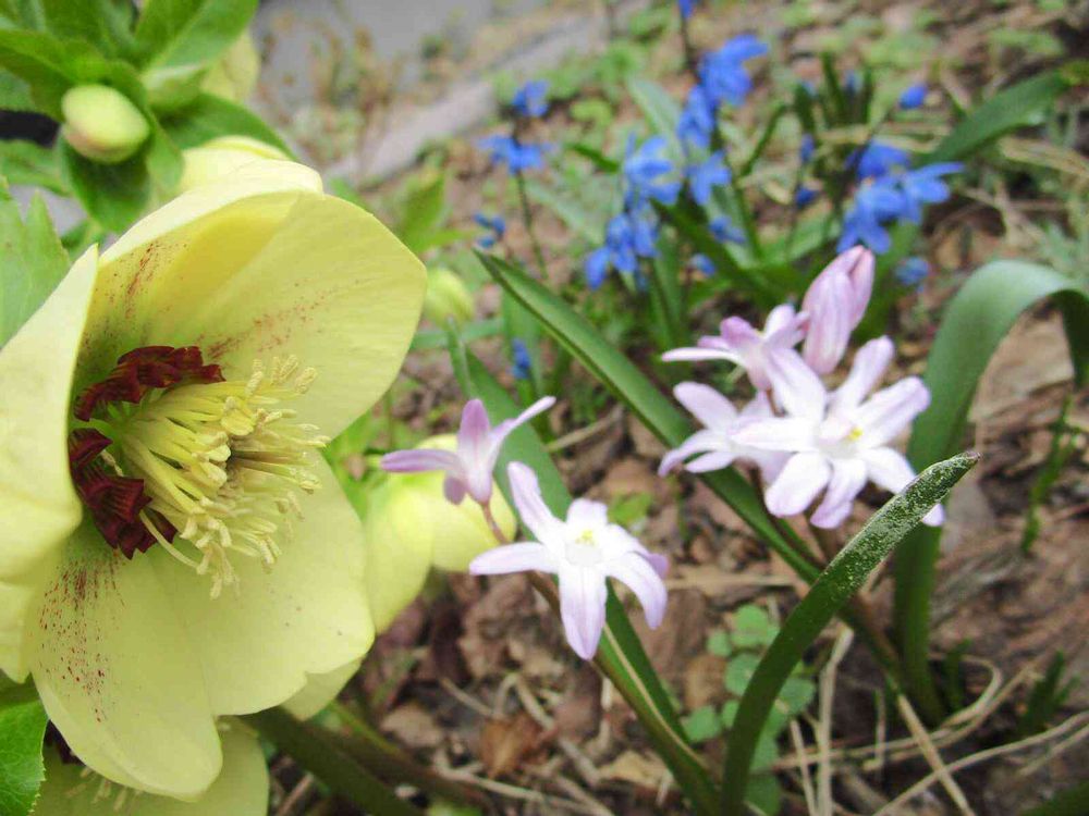 後ろの青いのは チオノドクサに似てるけど