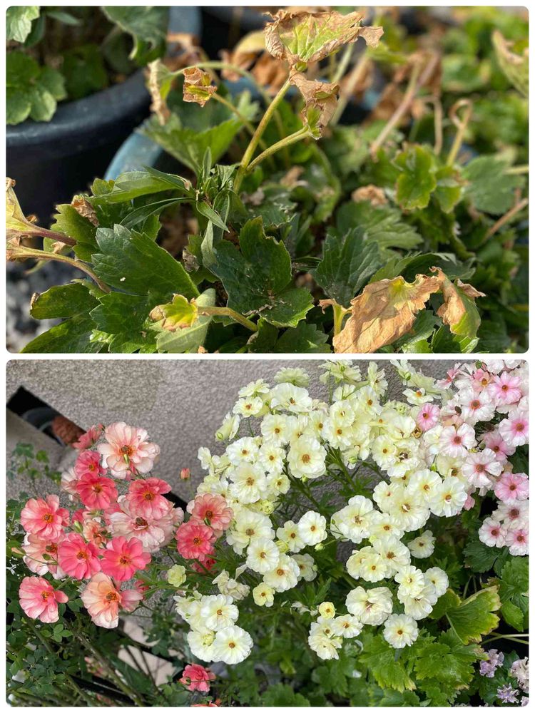 娘の日当たりのいいお庭に鉢植えを置いてあるので、保育園から帰った孫ちゃんが、私のマネをしてお花のお世話をしてくれているようです