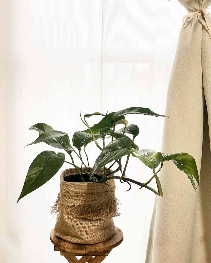 エピプレムナム・ピナツム、いい感じの個体を見つけたので持って帰ってきました🙂 麻の鉢カバーに入れたらピッタリ👏