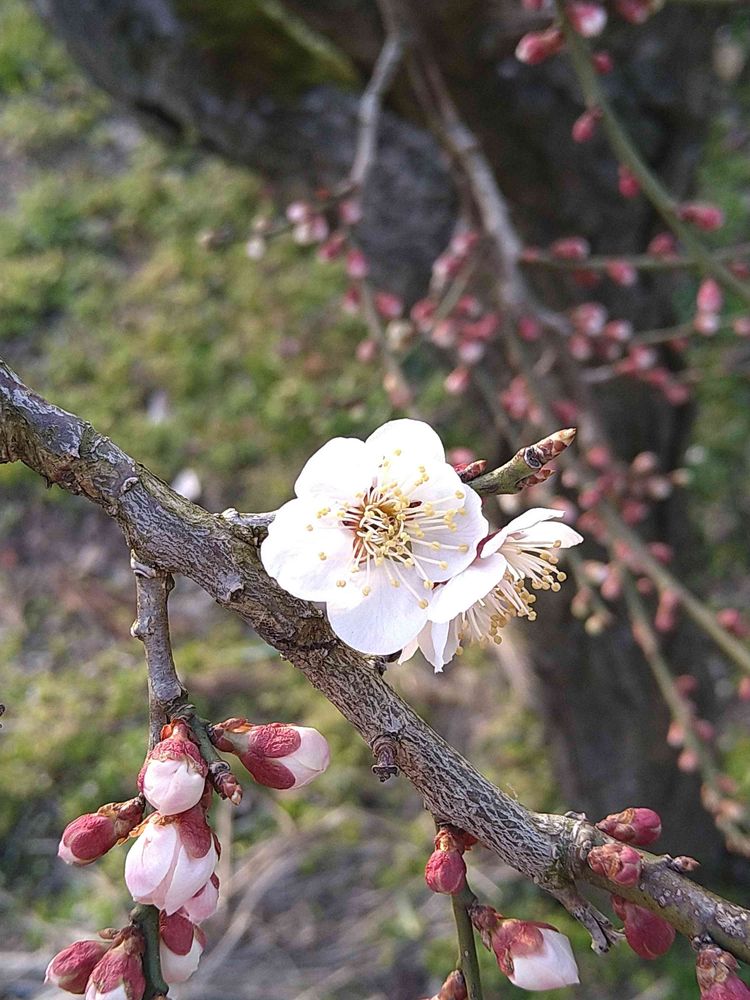 一昨年強剪定にあいなかなか元気を取り戻せない感じのわが家の梅の花です😅