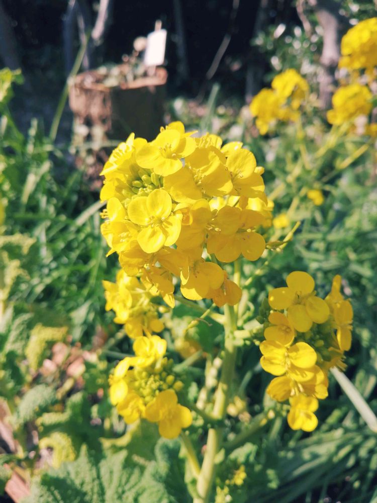 いちご狩りの後、道の駅に向かう途中のお散歩道で、こぼれ種で咲く菜の花と出会えました❣️