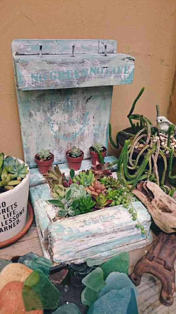 こんばんわ。多肉が植わってるところの横だけ、他の流木でかこみました。海いいですよね。シーグラスとかひろっちゃいます。(笑)Ψ( ̄∇ ̄)Ψ