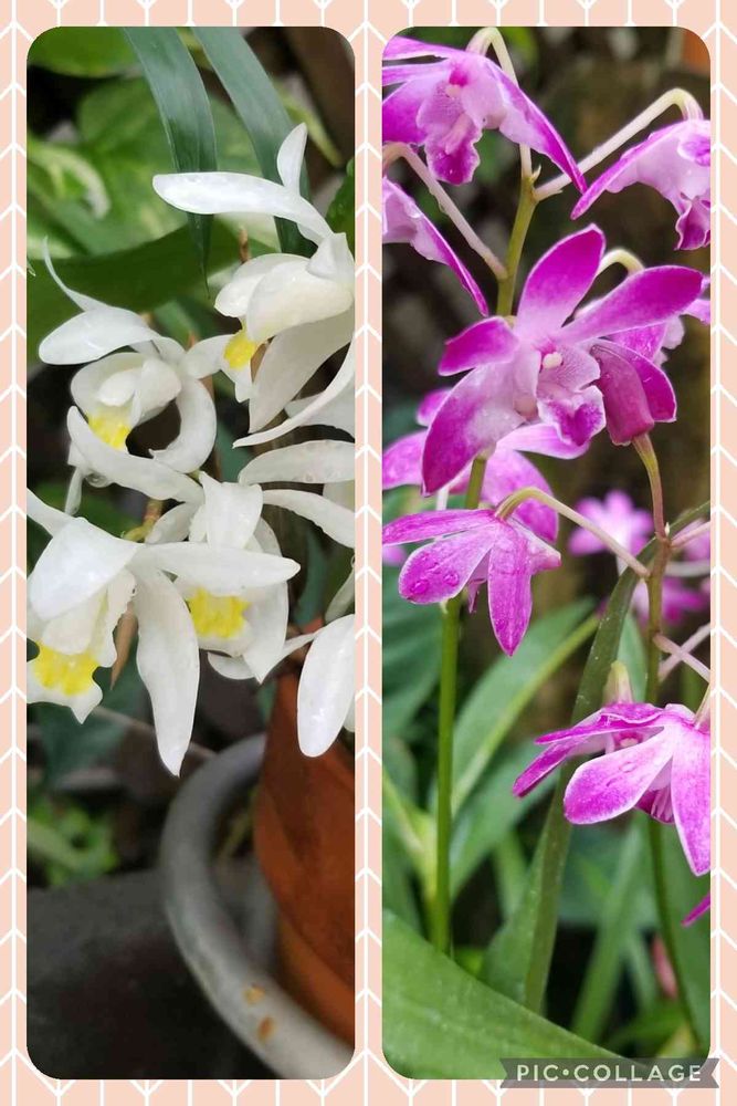 白とピンク紫?の二つのランで、素敵な花咲く乙女たち🌸のお祝い🥂