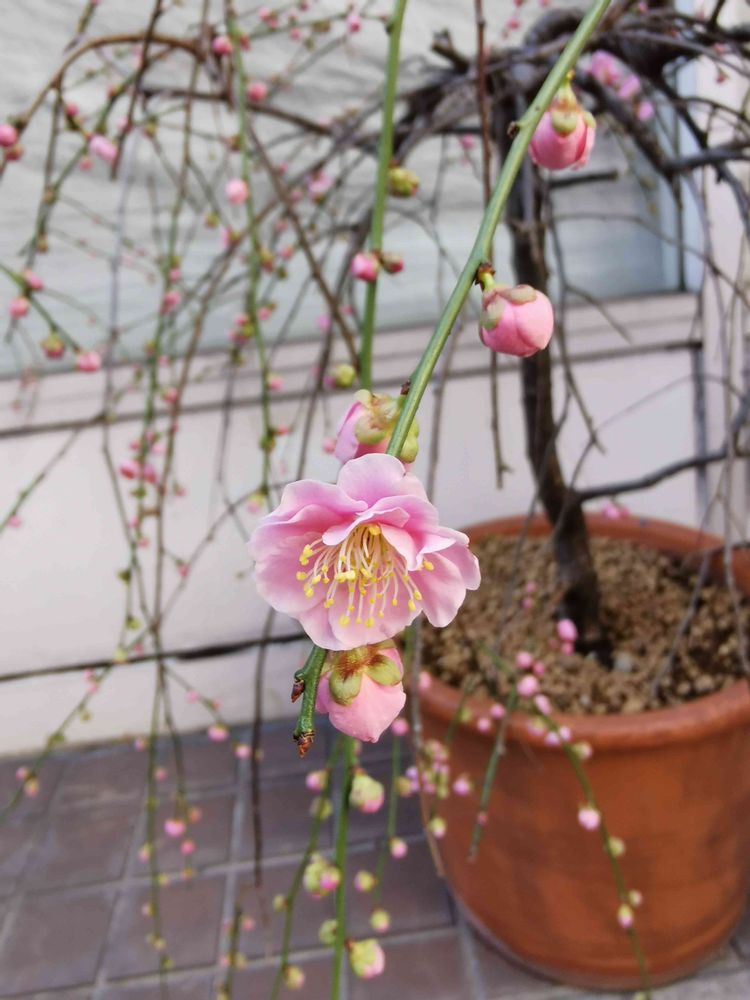 街角にきれいなしだれ梅が咲き始めていました。💕