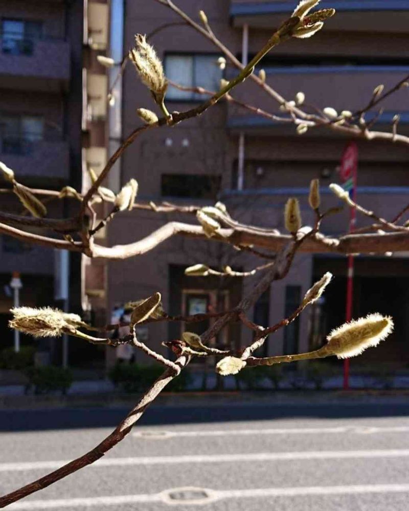 街路樹のワダスメモリーもうすぐ咲きそうに蕾が膨らみ初めました。