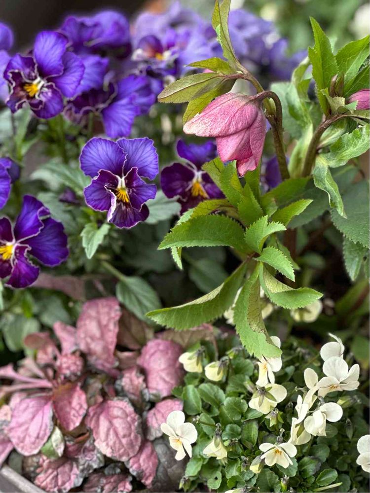 一年前にお迎えしたクリスマスローズの苗が、まもなく開花!寄植えのビオラ達もまだかまだかと待ち侘びているようです☺️