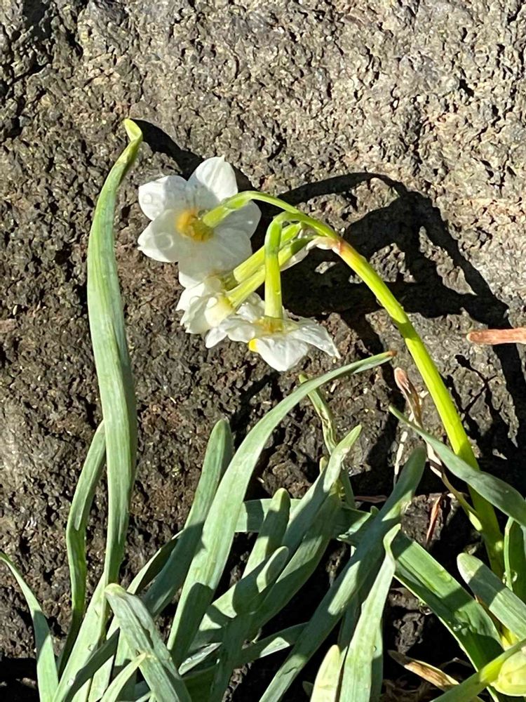 水仙の寄り添いあいて石温し