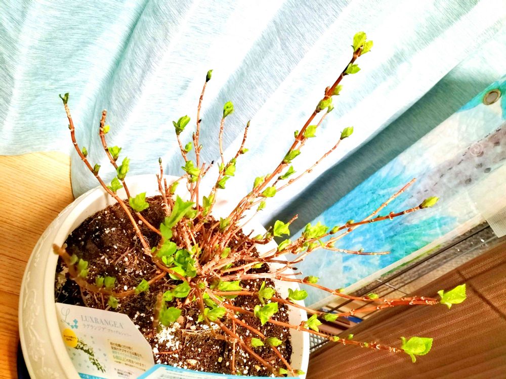 家の中に入れてから2週間が経ちました✨1週間で新芽が膨らみ、2週間目でようやく芽吹いて来ましたね✌️