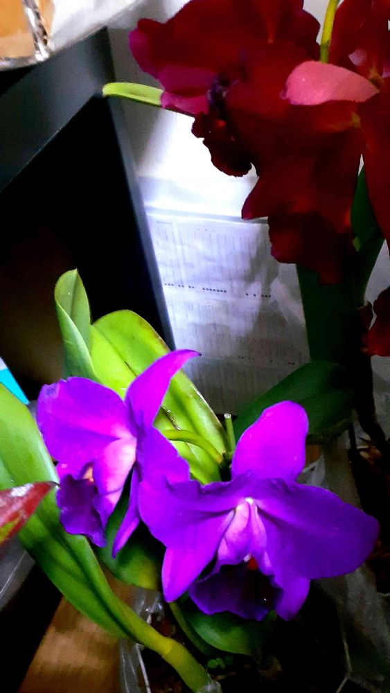 家のお人が寝ている時間に目が覚める事が多いので朝起きて家のお人が寝ている間にカトレア3株を窓辺に置いて暗くなるまで日光浴。放鳥で、文鳥放すので、家のお人が別室にこもってる間にカトレア3株をこの位置に戻すと。(PC横のすき間で、手前にアグラオネマさんが居て目隠ししててPCに座って覗いた角度でしか見えない配置にしてある😁)