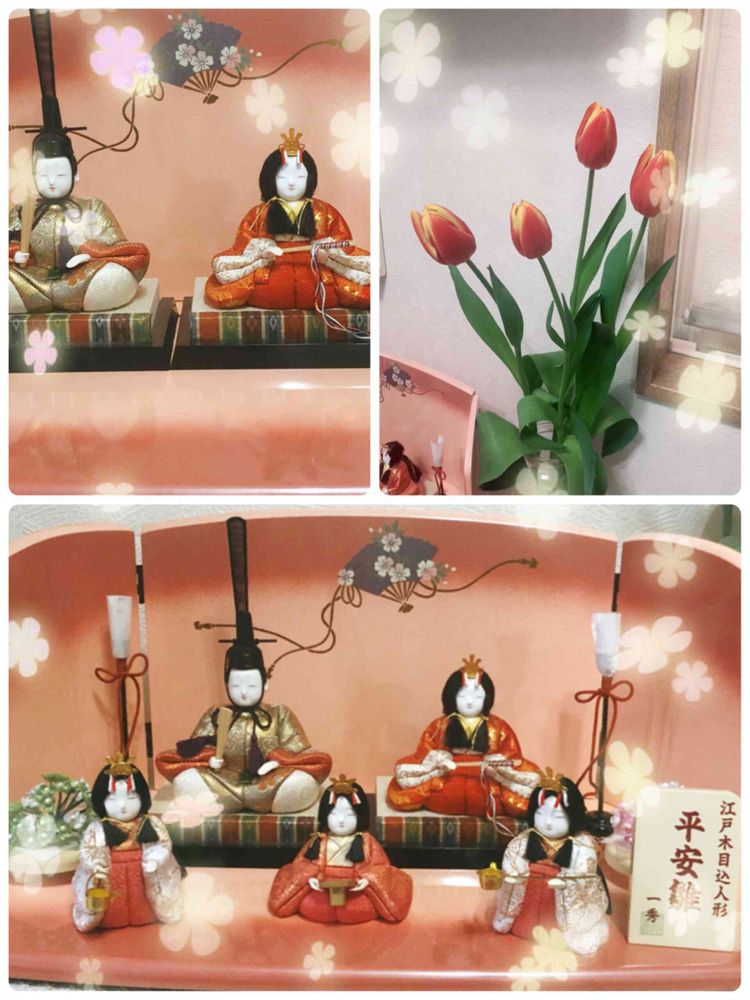 私の買った時の時代と違ってまた、可愛らしいお顔のお雛様ですね〜添えられたちゅうりっぷもとても可愛い色ですね💕💕 💕